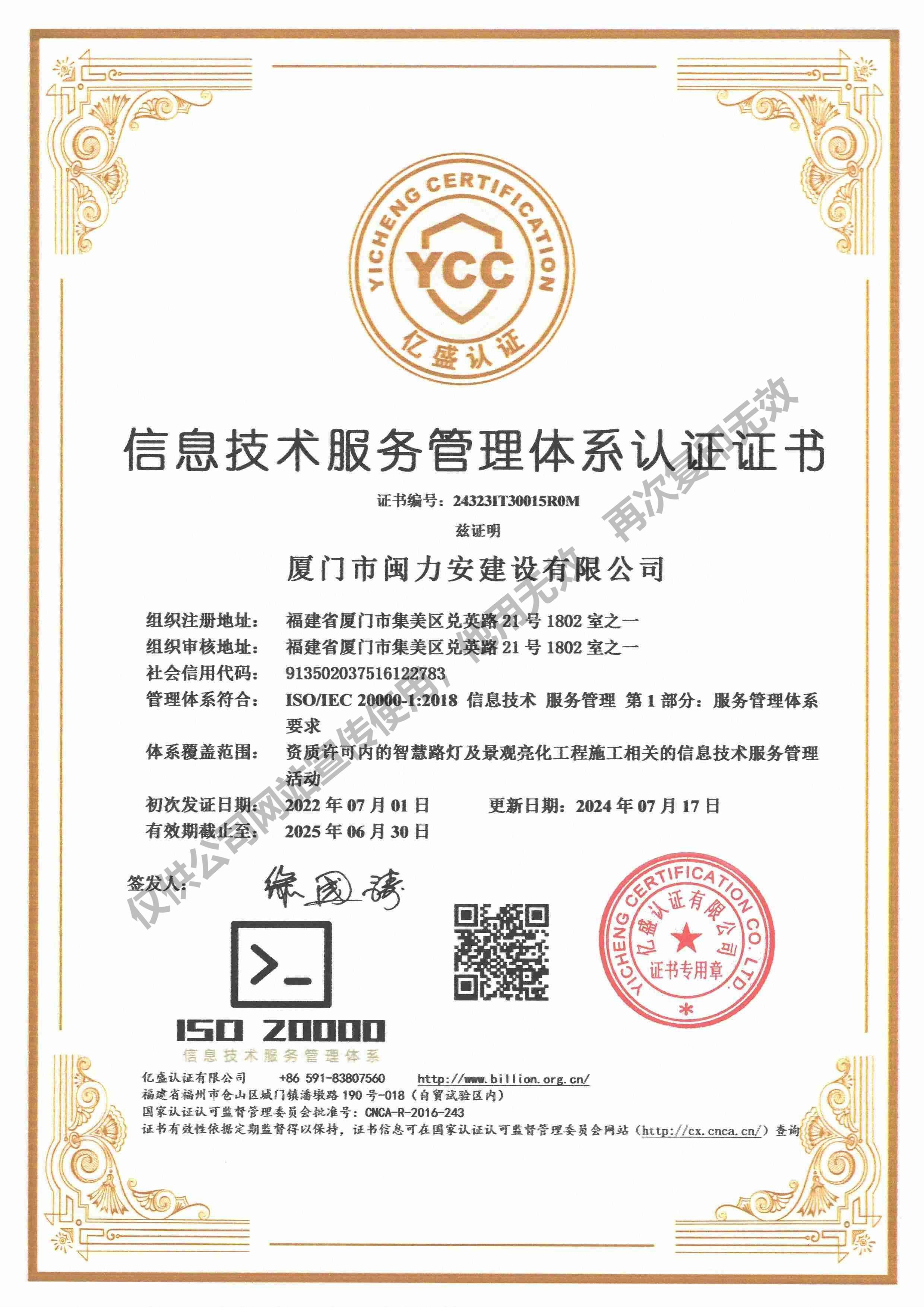 廈門市閩力安建設(shè)有限公司成立于2003年,公司取得市政公用工程施工總承包貳級(jí)、建筑裝修裝飾工程專業(yè)承包壹級(jí)、城市及道路照明工程專業(yè)承包壹級(jí)、電子與智能化工程專業(yè)承包貳級(jí)、消防設(shè)施工程專業(yè)承包貳級(jí)、電力工程施工總承包叁級(jí)、建筑機(jī)電安裝工程專業(yè)承包叁級(jí)、輸變電工程專業(yè)承包叁級(jí)、環(huán)保工程專業(yè)承包叁級(jí)、照明工程設(shè)計(jì)專項(xiàng)甲級(jí)、建筑裝飾工程設(shè)計(jì)乙級(jí)、施工勞務(wù)等資質(zhì)的綜合型企業(yè),公司于2013年通過了ISO9001質(zhì)量體系認(rèn)證,ISO14001環(huán)境管理體系認(rèn)證,OHSAS18001職業(yè)健康安全管理體系認(rèn)證。